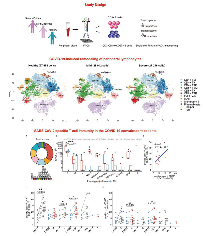 这项研究对于理解重症和轻症患者的发病和康复机制,以及设计防治SARS-CoV-2感染的疫苗和治疗药物具有重要意义。