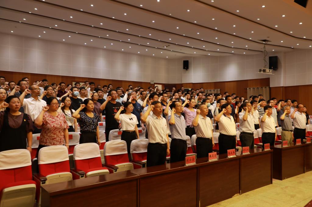 6月24日下午,我院在多功能报告厅举行了庆祝中国共产党成立100周年新党员入党宣誓暨表彰大会。院党委书记张树岭、院长焦洪涛等院领导,及全体党员、部分入党积极分子参加了大会,大会由焦洪涛主持。