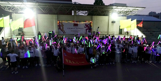 活动开始前,青春洋溢、活力四射的啦啦操表演瞬间点燃了现场气氛。参与活动的师生手持荧光棒,在操场组成1921-2021字样,点点荧光汇成人间星河,尽情讴歌我们伟大的中国共产党100年的光辉历程和不朽功绩。