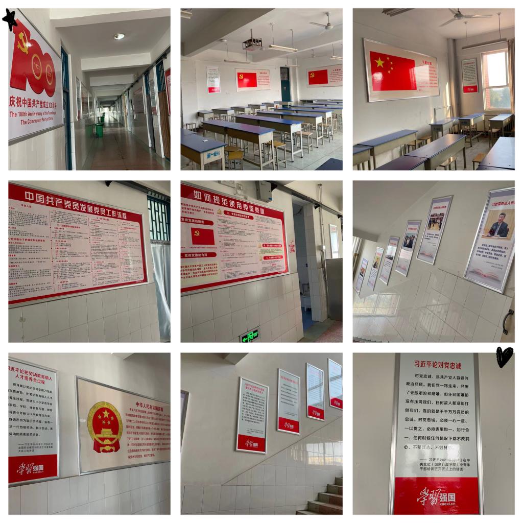 近年来,基础部党支部在院党委的正确领导下,为圆满完成新形势下宣传思想工作的使命任务,始终坚持以习近平新时代中国特色社会主义思想和党的十九大精神为指导,增强“四个意识”、坚定“四个自信”、做到“两个维护”,自觉承担起举旗帜、聚民心、育新人、兴文化、展形象的使命任务,坚持正确政治方向,大力加强宣传思想工作阵地建设,在关键处、要害处下功夫,在工作质量和水平上下功夫,扎实推进该支部宣传思想工作不断强起来。国庆伊始,基础部党支部充分利用党建活动室、一教五楼走廊与楼梯间大力加强宣传思想工作阵地建设,分别建设了党史教育、尊师敬教、普通话推广宣传、廉洁从教以及社会主义精神文明建设等五大宣传思想阵地,推动宣传思想工作不断强起来,促进基础部全体教师在理想信念、价值理念、道德观念上紧紧团结在一起,坚定理想信念,努力工作,为进一步推进我院教育教学改革和整体工作高质量发展作出更大贡献。