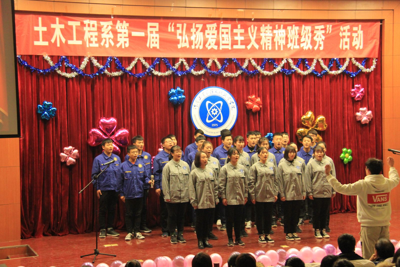 为弘扬爱国主义精神,引导学生建功立业新时代,凝聚班级向心力,营造正面、积极、团结、好学的校园文化氛围,培养学生高尚的道德情操和高雅的审美情趣,12月11日,我院土木工程系在多功能报告厅举办了“弘扬爱国主义精神”班级秀活动。经过前期预赛的选拔,共有7个班级的12支队伍进入了11日下午举行的决赛。