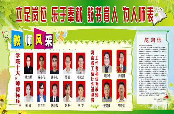 新学年,新气象,在庆祝伟大的祖国成立65周年华诞之际,全院师生坚定信念,牢记使命,深入践行社会主义核心价值观,围绕学院中心工作,继续发扬“特别能吃苦、特别能战斗、特别能奉献、特别能担当”的学院精神,改革创新,开拓进取,努力推动学院各项工作取得新突破,迈向新水平。各处室、各党支部按照要求,在宣传形式和内容上不断创新,展现了全院师生员工昂扬向上的精神风貌。
