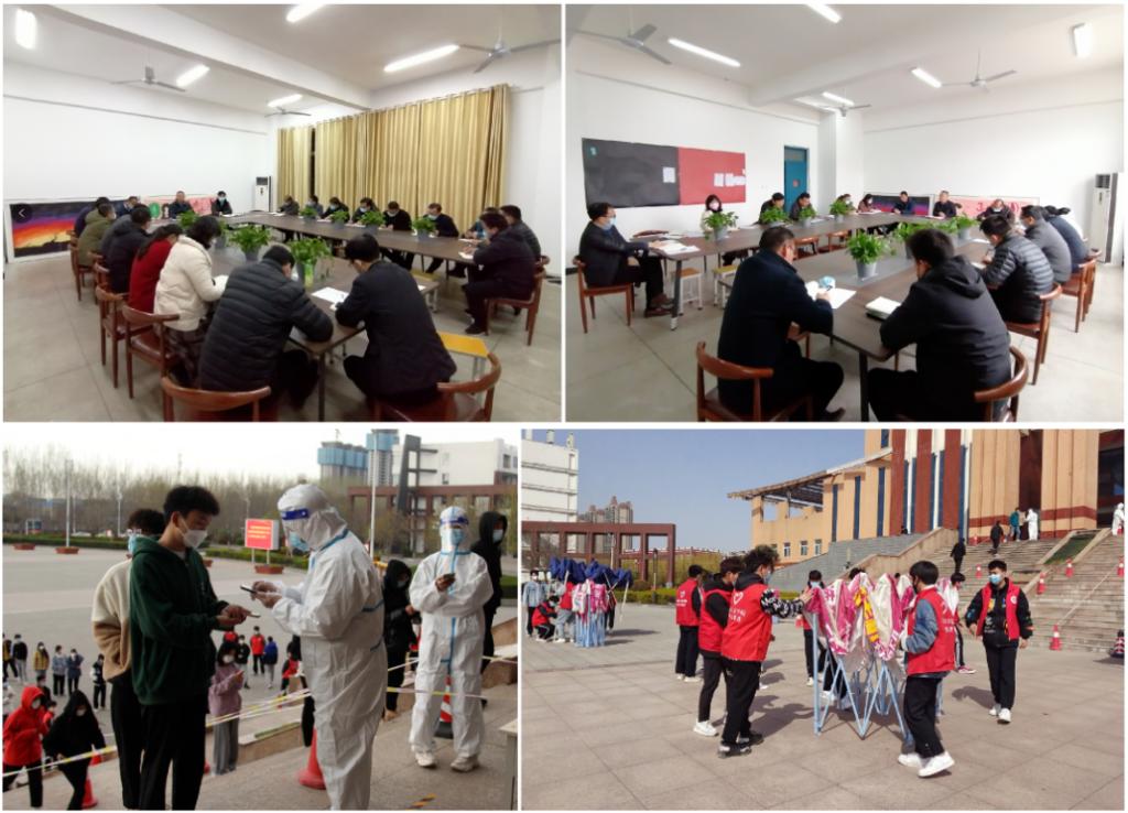 战“疫”打响后,学院党委高度重视,工作专班第一时间启动平转战。院党委书记张树岭、院长焦洪涛多次在党委会议、党政联席会上安排部署校园疫情防控工作,深入一线检查防疫措施落实情况和校园安全隐患。随着本轮疫情的逐渐严峻,学院多次召开疫情防控会议和各工作专班专题会议,传达院党委关于当前疫情防控工作的安排部署。各部门各司其职,任劳任怨,全力保障校园安全稳定。