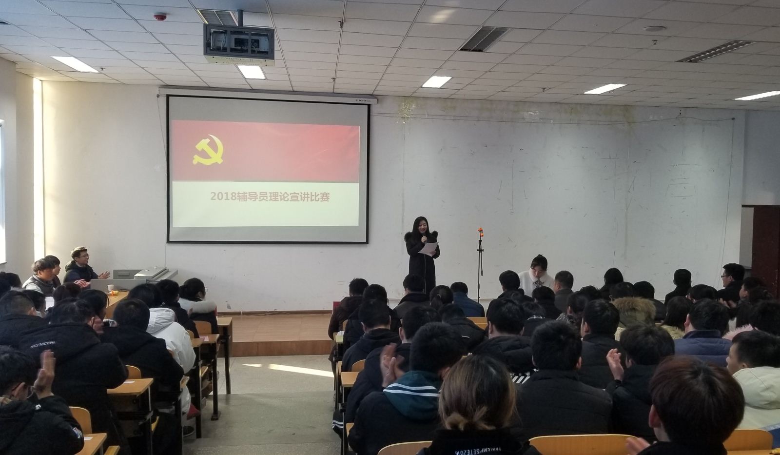 为贯彻全国高校思想政治工作会议精神,落实立德树人根本任务,切实推进我院辅导员队伍专业化、职业化建设,进一步提高我院大学生思想政治教育质量,提升辅导员职业能力和专业素养,12月13日,我院在第四会议室成功举办2018年度辅导员理论宣讲比赛。本次比赛由学生处主办,评委由党委宣传部、院团委及各系部相关负责人担任,全体辅导员及200余名学生代表现场进行了观摩。