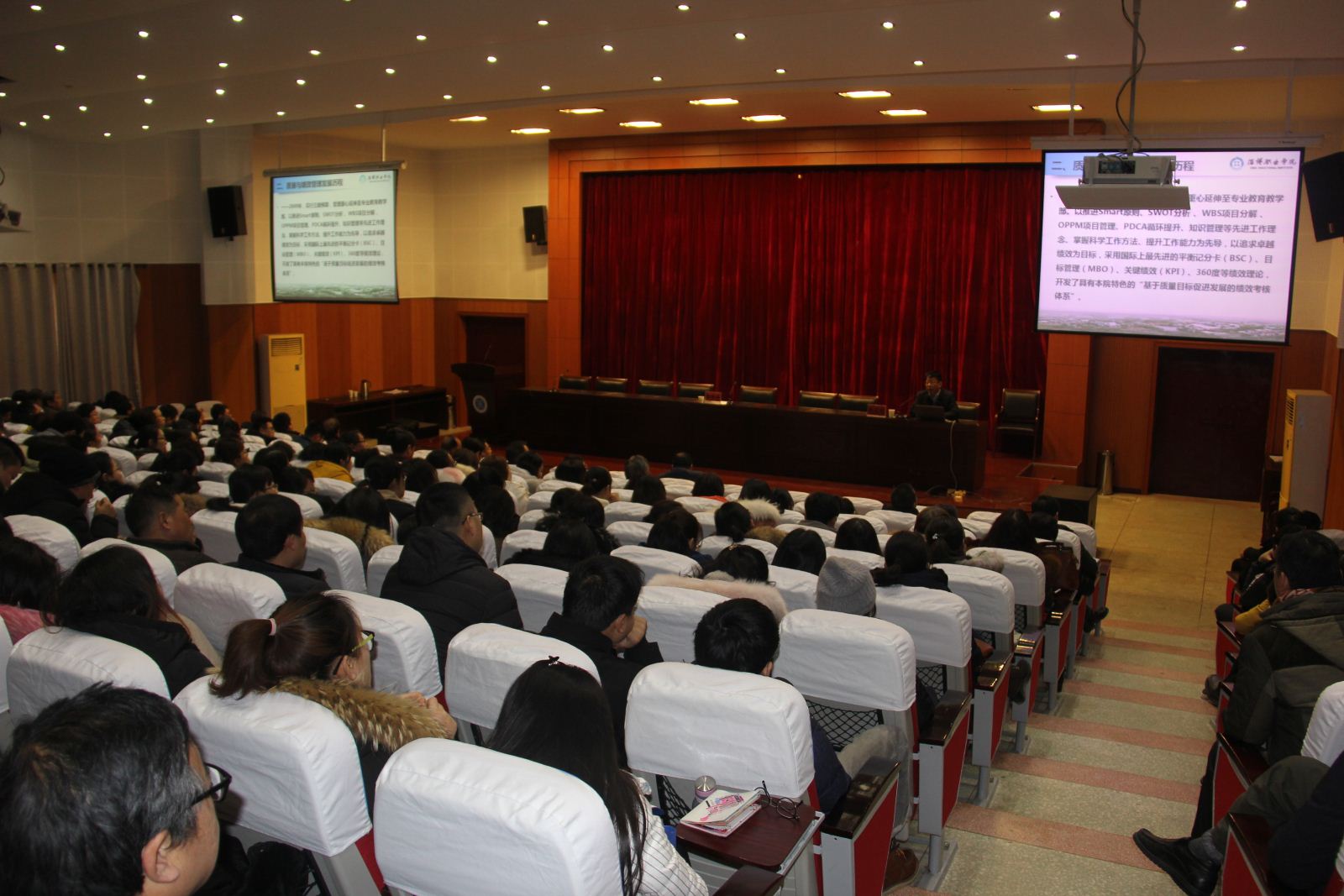 为进一步推进我院教学诊断与改进工作,完善内部质量保障体系,提升学院内涵建设质量,提高人才培养水平, 1月16日,我院邀请淄博职业学院质量控制与绩效考核办公室主任姚原野教授为学院全体教职工作了题为“淄博职业学院质量与绩效管理探索与实践”和“诊改制度建设引导管理变革”两场专题报告,报告会由院长助理张红兵主持。