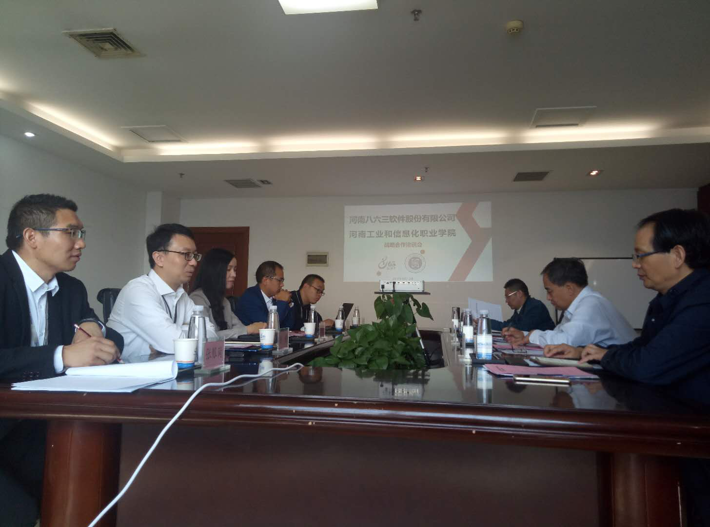 参观考察结束后,双方就今后校企合作进行了会谈,会谈过程中,双方就创建河南工信八六三研究院、校企合作及专业共建进行深入而富有成效的交流,并就相关事宜达成一致意见,认为开展深入校企合作是大势所趋,符合现代职业教育的教学规律,有利于服务地方区域经济发展,双方表示,就达成的一致意见要加快推进落实。