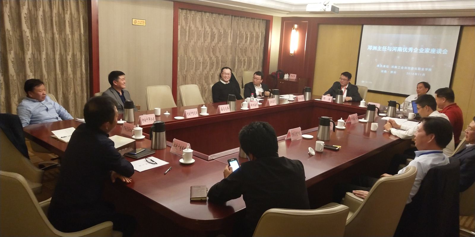 在听取刘伟副省长及几位院士的演讲后,我院与会务组积极对接,在论坛举办期间成功组织了社科院工业发展研究室邓洲副主任、德国汉堡科学院张建伟院士与河南省优秀企业家的座谈会。企业家们与邓主任和张院士就企业的战略目标定位、企业管理理念、所属行业的技术发展趋势、人工智能与传统产业如何有效结合、如何通过投资获取行业产业技术发展前沿信息做好技术储备、河南企业赴欧洲投资的注意事项、德国职业教育的先进经验对我省职业教育发展的借鉴等展开坦诚交流。座谈会气氛热烈,企业家们纷纷表示收获很大,对两位专家表示诚挚感谢,希望两位专家能持续提供政策指导和技术支持。