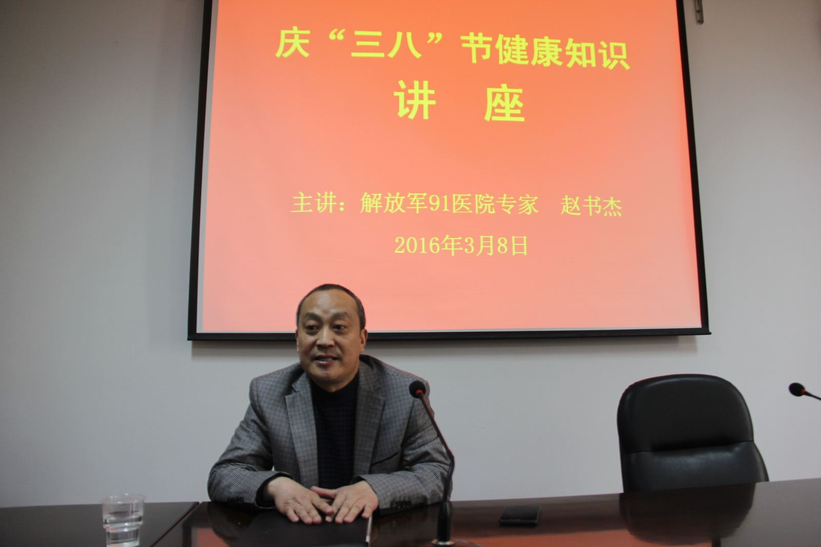 二是为提高女教工健康防治意识、学会健康保健、健康生活,特邀解放军第91医院体检中心主任、保健专家赵书杰,为女教工进行健康养生专题讲座。