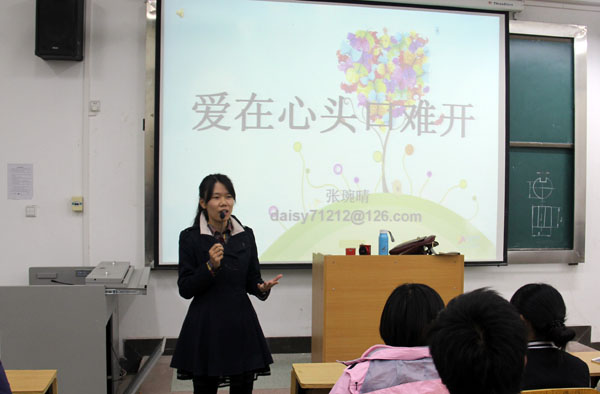 为加强我院大学生心理健康教育,培养学生正确的心理健康意识和观念,10月29日晚,院基础部和心理健康教育中心组织举办了心理健康教育专题讲座。张琬晴老师为同学们作了题为“爱在心头口难开”的专题报告。