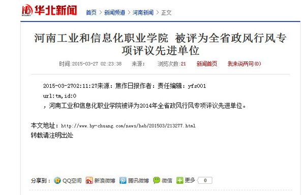 近日,《焦作日报》、光明网教育频道、华北新闻网等媒体对此进行了相继报道。近年来,我院以加强师德师风建设为重点,以办好人民满意学校为目标,不断提高办学水平和教学质量,扎实推进行风建设工作,得到了学生、家长、上级部门和社会各界的一致好评和充分肯定,连续多年被评为行风建设先进单位。