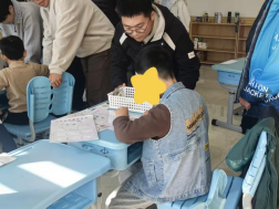 接着,每三位学生与一名儿童配对,在教室中和儿童们进行详细沟通和了解,更让学生们有机会近距离观察、理解并回应自闭症儿童的个体化需求,切身感受差异化服务的重要性。