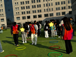 “气球宝宝要乖乖跟着搭档回家哦!”10分钟的气球接力赛环节趣味十足。学生们以小组动力理论为指引,将孩子们分为2人一组协同参与。针对部分儿童肢体不协调的情况,学生们采用“一对一辅助+鼓励话术”,一句“你帮同伴稳住气球的样子超棒!”既强化了彼此的协作意识,更以正向反馈帮孩子们培育抗挫力。现场气球纷飞,孩子们从最初的羞涩避让,渐渐变得主动配合、默契互动,同伴支持的温暖在一次次接力中悄然传递,定格下珍贵的成长瞬间。