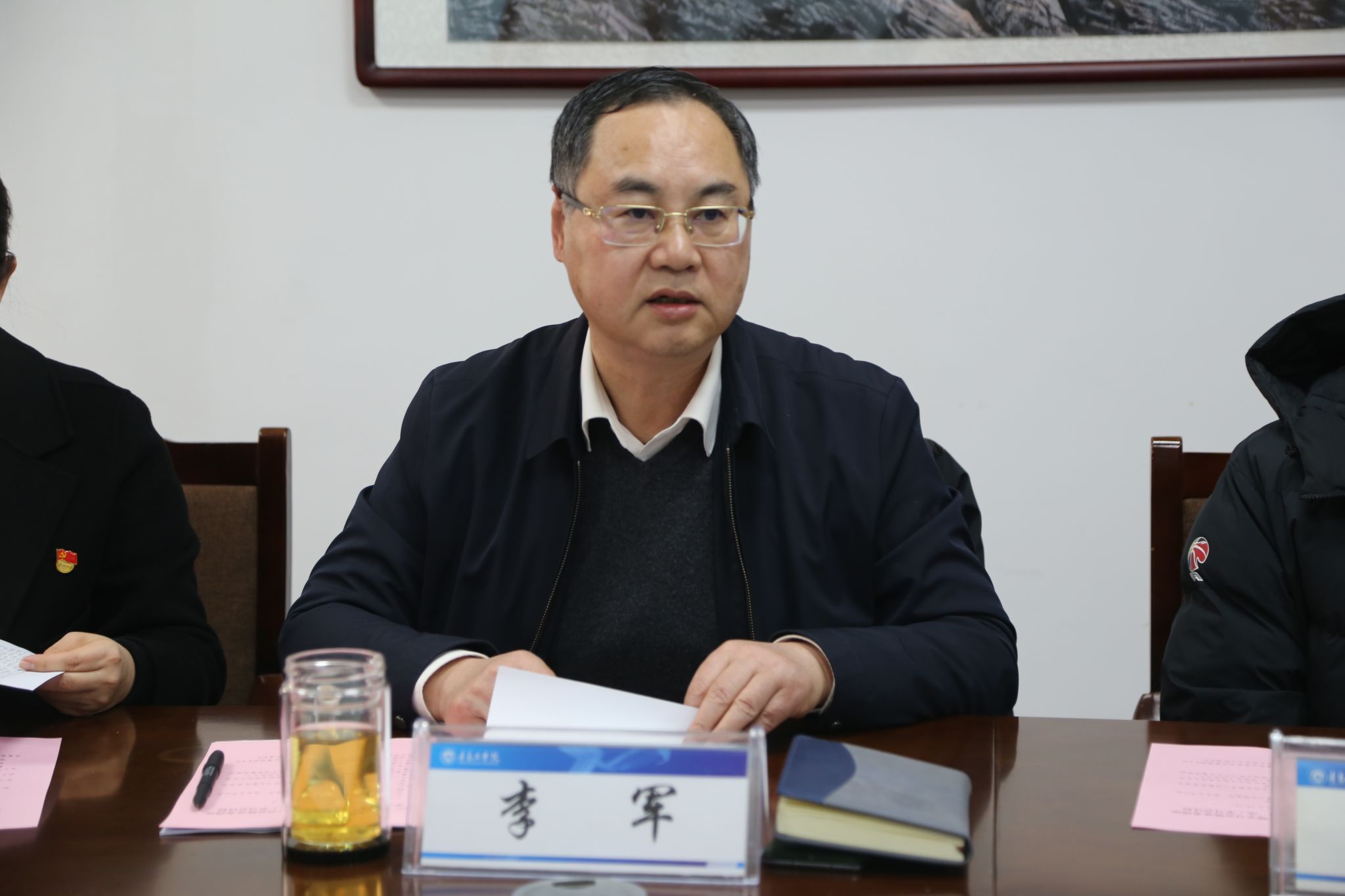 在学习会议上,李军领学了习近平总书记在中央政治局民主生活会上的重要讲话精神,并结合学校实际,解读了持之以恒贯彻落实中央八项规定精神的实践路径。与会人员结合各自分管工作进行了深入的研讨交流。