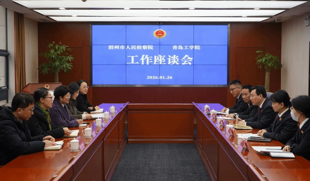 为扎实推进2026级知识产权本科专业人才培养方案修订工作,深化新工科、新文科建设与应用型人才培育改革,1月26日,青岛工学院马克思主义学院党总支副书记付国花,知识产权专业负责人刘蕾,专任教师荆秋教授、董玉立副教授、周淼老师一行赴胶州市人民检察院,围绕人才培养方案修订开展专题调研与座谈交流。