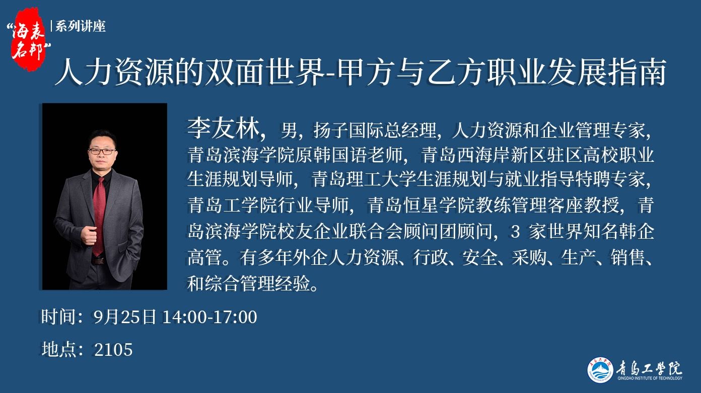 “海表名邦”系列讲座:李友林《人力资源的双面世界-甲方与乙方职业发展指南》