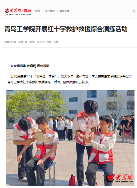 《大众网》青岛工学院开展红十字救护救援综合演练活动