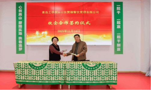 2025年11月14日,青岛工学院经济管理学院与山东赞稼餐饮管理有限公司校企合作签约仪式在赞稼青岛总部隆重举行。青岛工学院投资方总裁、副校长李伟,经济管理学院院长宋辉等与山东赞稼餐饮管理有限公司总经理王艳华等相关部门负责人共同出席此次活动,签约仪式由赞稼餐饮管理有限公司培训部主任刘敬明主持。李伟与王艳华分别代表校企双方在合作协议上签字,李伟向企业授予青岛工学院校外实习(实践)基地牌匾。