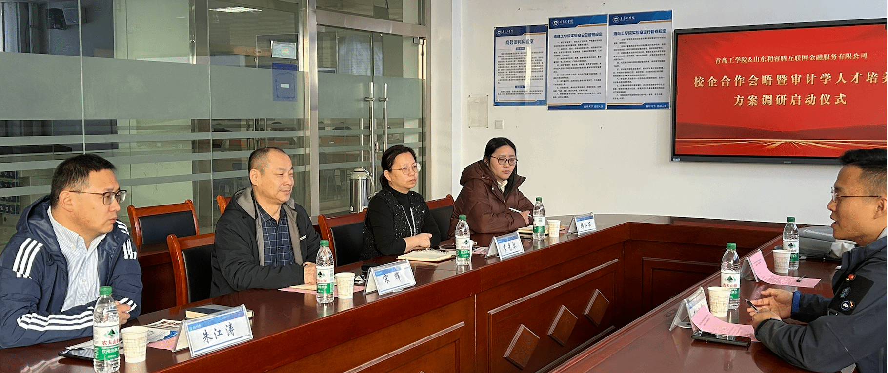 2026年3月12日,青岛工学院经济管理学院与山东利睿腾互联网金融服务有限公司校企合作会晤暨人才培养方案研讨会在TG5006会议室举行。青岛工学院经济管理学院院长宋辉、党总支副书记朱江涛、审计学专业负责人李光琴、商职教研室主任韩江丽,与山东利睿腾互联网金融服务有限公司总经理王心才、企业代表杨洁共同出席会议,双方就校企深度合作事宜及新时代人才培养进行深入交流。