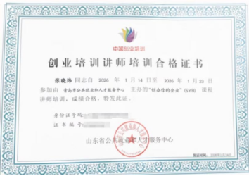 为进一步加强学校创新创业教育师资队伍建设,提升教师双创教学与实践指导能力。近日,我校选派商务外语学院虞婷婷、张晓炜两位教师赴青岛市参加山东省公共就业和人才服务中心指导、青岛市公共就业和人才服务中心主办的2026年青岛市首期SYB创业培训讲师培训班,系统学习先进教学理念与授课方法,助力学校创新创业教育工作提质升级。