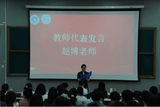 首届青岛市大中小学思政课教学比赛一等奖获得者赵博代表教师发表了教师节感言,她分享了自己在教育教学中的心路历程和感悟,表达了对教育事业的热爱和对学生的关爱之情。表示将继续努力,为培养更多优秀人才、推动学院教育事业的发展贡献自己的力量。学生代表以生动活泼的表演向老师们表达了深深的敬意和最真挚的祝福。