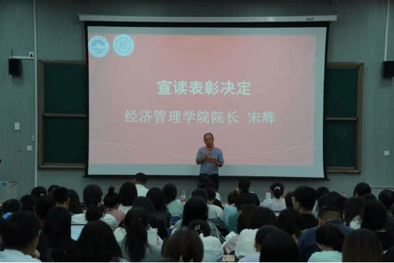 院长宋辉宣读了《经济管理学院关于表彰2023-2024学年教学科研等工作先进个人的决定》,他对过去一年中在教学、科研、指导学生竞赛、就业、创新创业、取得标志性成果、获得省市级表彰等工作中表现突出的教师给予了高度赞扬,号召全体教师以先进为榜样,不忘初心、牢记使命,务实进取、开拓创新,以更加强烈的使命意识、更加饱满的精神状态,为提升学院各项工作水平,取得更多成果,全面推进应用型本科高校建设作出新的更大贡献。与会领导为获奖教师颁发了证书并送上了鲜花。