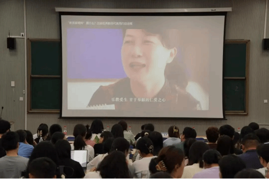 庆祝会上,全体教师共同观看了优秀教师代表用行动诠释“教育家”精神的视频,以此激励全体教师弘扬教育家精神,争做新时代好老师。