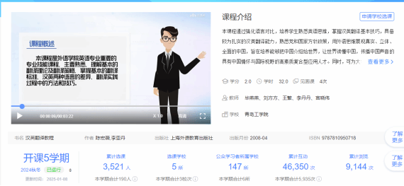 基于以上课程设计方案,《汉译英》课程取得丰硕成果,2024年被评为山东省第三批线上线下混合式一流课程和智慧树精品课程。