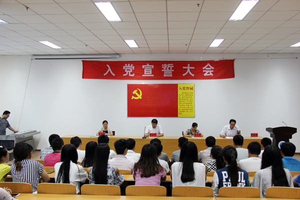 2014年6月19日下午4点,我院在图书信息大楼第三会议室隆重举行2014年新党员入党宣誓大会,出席此次大会的有河南理工大学高职学院副书记兼副院长黄建军副教授、党政办主任贺子杏副教授、党政办李雪莲老师、校组织人事处李海清副教授、赵少华老师。会议由李海清同志主持。