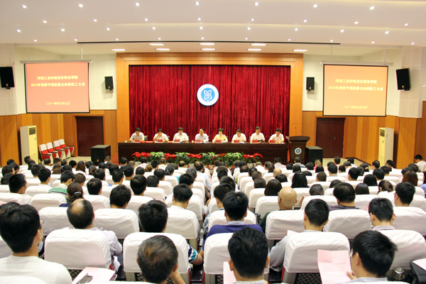 大会在雄壮的国歌声中拉开序幕。程燕燕处长宣读了教师节慰问信,对奋战在一线的广大教职工表达了良好的节日祝愿。毋虎城副院长宣读了《河南工业和信息化职业学院关于表彰2014年先进集体和先进个人的通知》,勉励广大教职工珍惜荣誉,再接再厉,再创佳绩。与会领导为受表彰的广大教职工颁发了荣誉证书。翟贵平院长在会上发表了讲话。