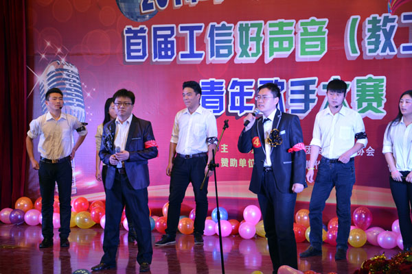 下午15时,副院长毋虎城与焦作联通公司校园营销中心副经理魏星、河南理工大学音乐学院仇博老师等9位来宾分别坐上了评委席和嘉宾席。大赛在单玉荣老师一曲《最美是你》歌伴舞中华丽开场。随着教务处林刘军、樊磊老师的一首《父亲》,决赛正式拉开序幕。《谢谢侬》、《至少还有你》、《大中国》……参赛教师们为观众奉献了一首首优美的歌曲,而台下观众席也不时传出喝彩助威的口号。比赛间隙,学生们带来的舞蹈《西域风情》和小品《测谎机器人》,也为大赛增色不少。比赛最后阶段,随着侯嘉嘉老师的一首压轴曲目《等待》,观众席掌声雷鸣,现场气氛也达到了最高潮。比赛单元结束后,工作人员紧张统计分数之际,全体参赛选手共同登台为大家献上了一首《工信欢迎你》,引发全场大合唱,7位评委和2位嘉宾也不自觉加入了打拍合唱的行列。
