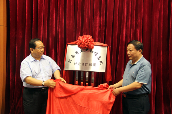 王登喜、丁福浩为省工业和信息化校企合作联盟揭牌