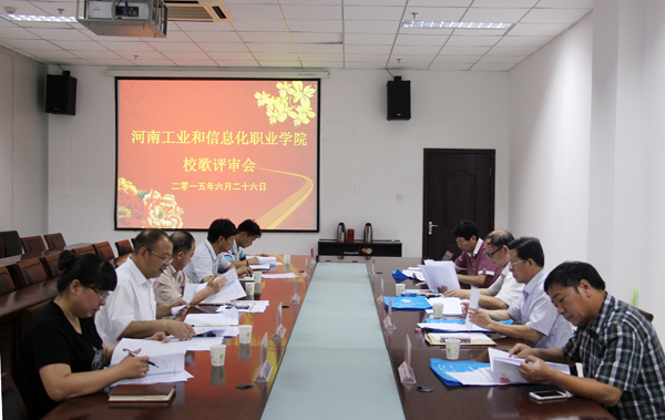 6月26日下午,院党委宣传部组织焦作市作家协会副主席杨晶、焦作大学学报主编郑心灵教授、焦作高等师范专科学校文学院院长司小同教授、郑州科技学院音乐系主任张志庄教授等在我院第二会议室召开了校歌征集作品评审会。
