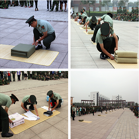 在总教官的指挥下,参加军训的学生分成12个方队,依次进行会操表演。“立正”、“跨立”、“齐步走”……整齐的步伐、划一的动作、嘹亮的口号充分展现了我院学子严明的组织纪律和昂扬的精神风貌,赢得了在场领导、教官和老师们的一致好评。