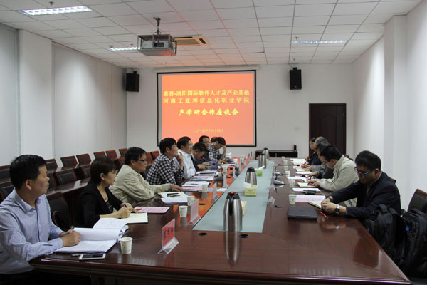 观看学院专题宣传片后,翟贵平简要介绍了我院的办学历程、专业特色、人才培养和发展战略等情况。他指出,校企合作、产教融合是学校转型发展和应用型人才培养的重要途径,也是人才培养的新模式、新机制。此次我院与惠普公司开展合作,是双方着眼长远、互利共赢的战略之举,必将进一步推动我院技术技能型人才培养的进程,同时也能够为中原地区软件人才需求提供支撑。希望双方通过深入沟通,推动深层次、实质性项目合作的开展,为信息化人才培养做出更大的贡献。史森介绍了中国惠普有限公司和惠普—洛阳国际软件人才及产业基地的基本情况,并对我院近年来取得的成绩给予了高度评价,希望在校企合作方面与我院资源共享,合作共赢,为社会培养更多的IT业优秀人才。双方围绕“联合培养互联网+创新创业人才项目”、“惠普产学研合作工作站共建项目”和“惠普IT特色专业或惠普IT特色院系建设项目”等内容进行了深入交流,并在战略合作方面达成了初步合作意向。