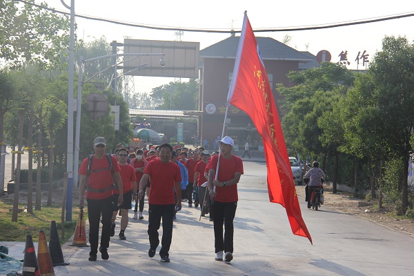 早上7点,参加登山比赛活动的80余名党员从焦作市影视城广场出发,同志们互相鼓励、互相帮助、欢声笑语、乐在其中。一个半小时后,全部抵达目的地——太行八英纪念馆,全程7.5公里。