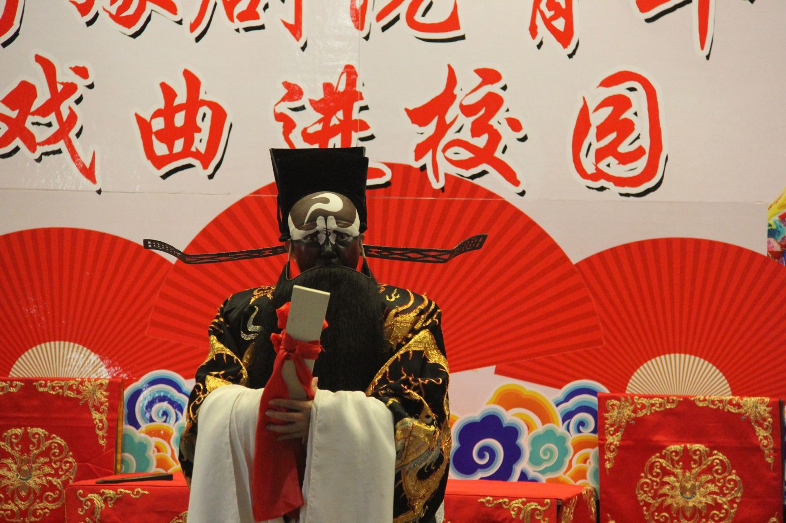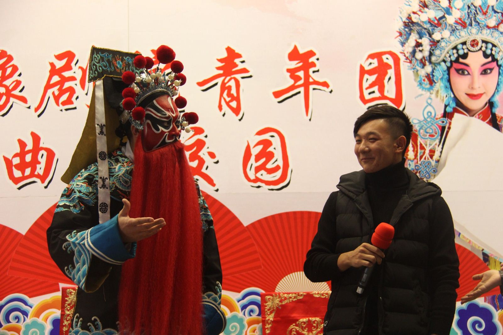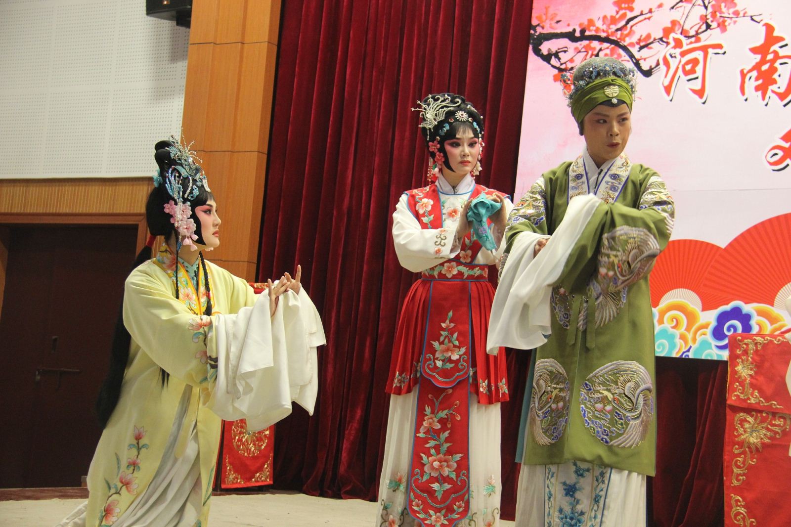 活动伊始,省豫剧青年团主持人李焕娜携乐队老师及多位优秀青年演员采用戏曲知识讲授与精彩表演有机结合的方式,向广大师生生动讲解了豫剧相关知识,并邀请多名师生上台体验豫剧表演,感受戏曲文化的魅力。随后,演员们精彩演绎了折子戏《包青天——见皇姑》和《西厢记·拷红》,优美的唱腔,细腻精湛的表演,将人物形象和故事情节表现得酣畅淋漓,赢得了台下观众的阵阵掌声、喝彩声。