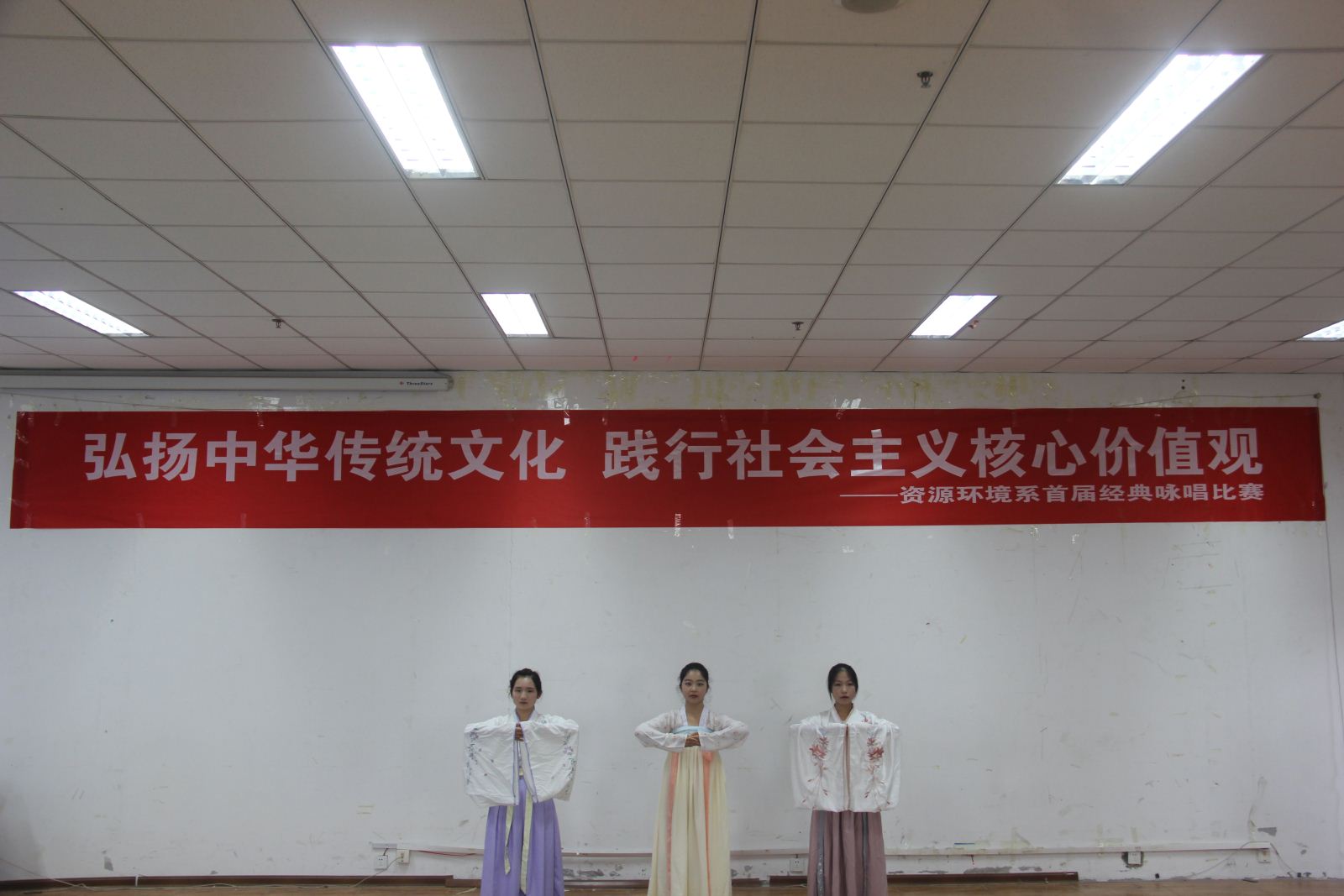 为更好传承中华文明,领略华夏经典,增强师生民族自豪感,5月24日下午,我院资源环境系以“弘扬中华传统文化,践行社会主义核心价值观”为主题举办了经典咏唱比赛。本次比赛以班级为单位,采取全员参与形式,具体包括诗歌朗诵、经典献唱以及评委点评等三个部分。