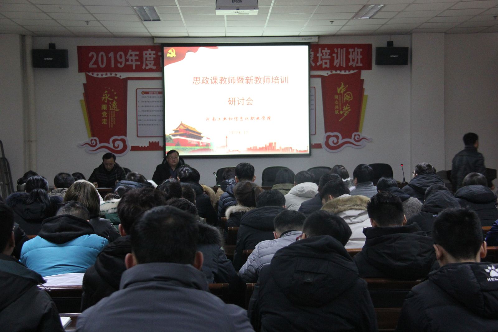 为全面总结2019年度新教师培训工作,传达焦作市大中专院校思想政治工作联席会议精神,12月24日下午,学院在第三会议室召开2019年度新教师培训总结暨思政课教学研讨会。副院长毋虎城、教务处和思政部负责人、思政课专兼职教师以及新入职教师参加会议。