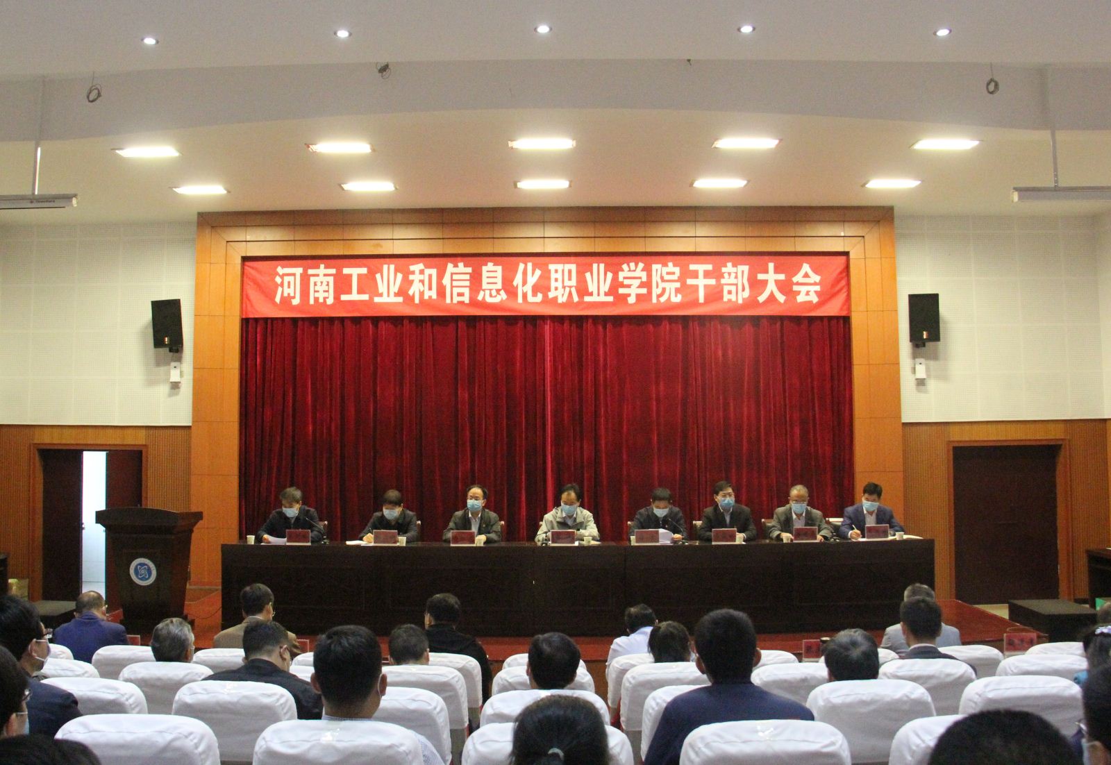 5月9日上午,我院在多功能报告厅召开干部会议,宣布我院党委书记和院长任职决定。河南省工业和信息化厅党组书记、厅长李涛,厅党组成员吕方,厅办公室主任李俊岭、政策法规处处长樊二刚、人事处副处长房建平,焦作市委组织部副部长、市委老干部局局长查仕成等出席会议。学院领导班子成员,全体中层干部及部分教师代表参加了会议。会议由吕方主持。