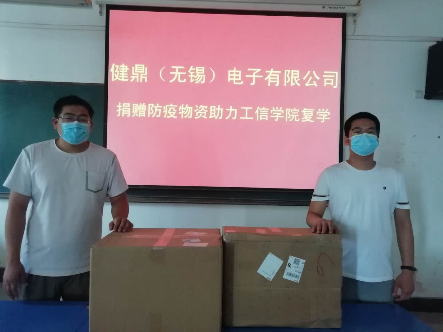 5月25日上午,校企合作企业健鼎(无锡)电子有限公司向我院捐赠一批防疫物资,以实际行动助力我院复学工作。