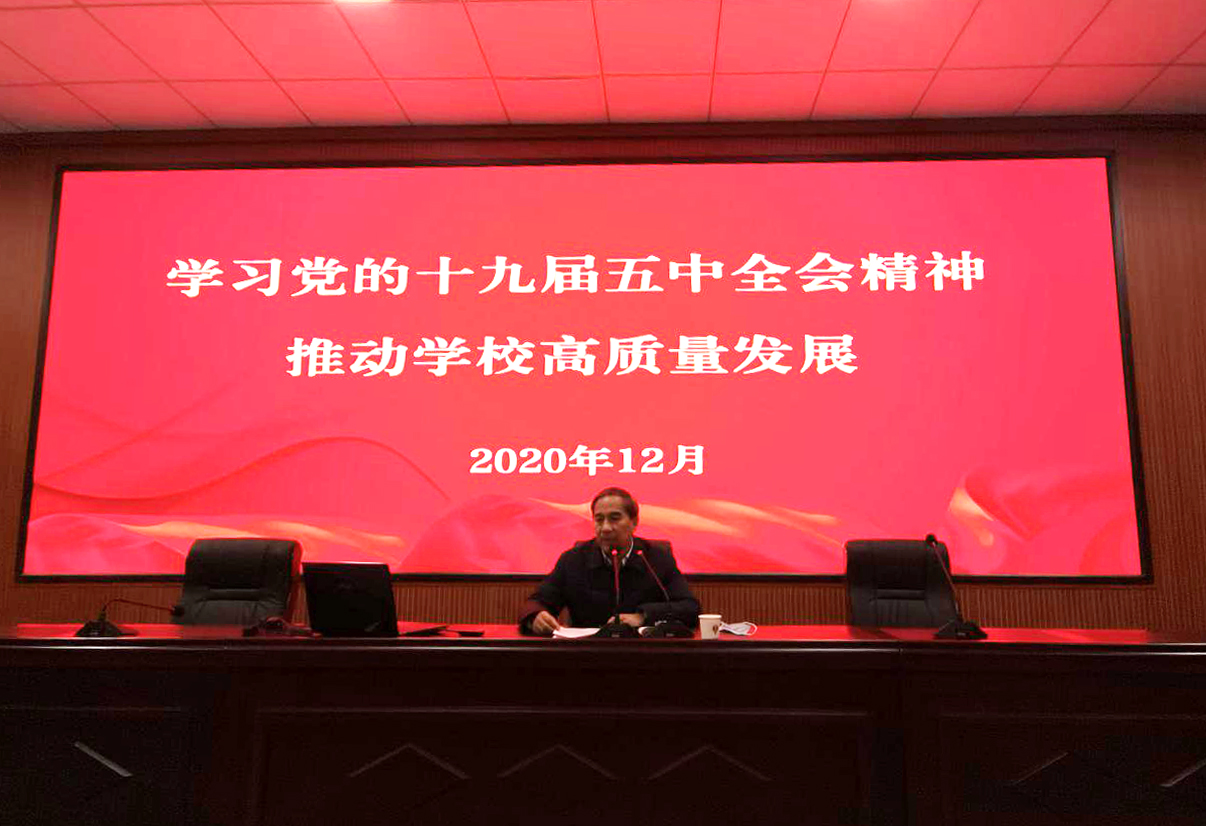 课上,张树岭以“学习党的十九届五中全会精神 推动学校高质量发展”为主题,重点围绕两个大局,突出新阶段、新理念、新格局对党的十九届五中全会进行了全面解读。