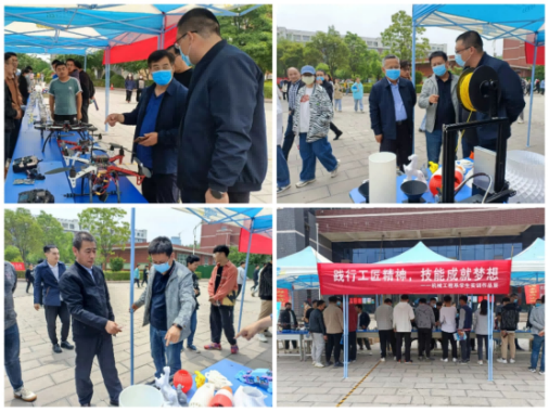 机械工程系现场展示了师生组装的无人机作品、3D打印机及打印作品、数控多轴联动复杂零部件加工作品等,向全院广大师生展示了该系的办学特色与亮点。