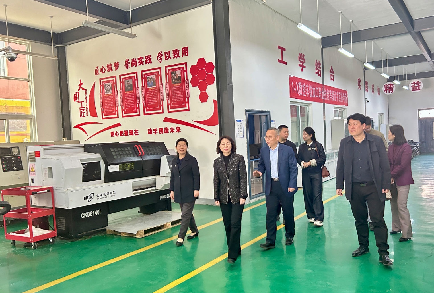 会后,李开贞一行前往智能制造学院五轴联动实训基地进行参观并给予了高度评价,他们认为学校历史底蕴深厚,教学特色鲜明,教育培训与产业结合紧密、匹配精准。