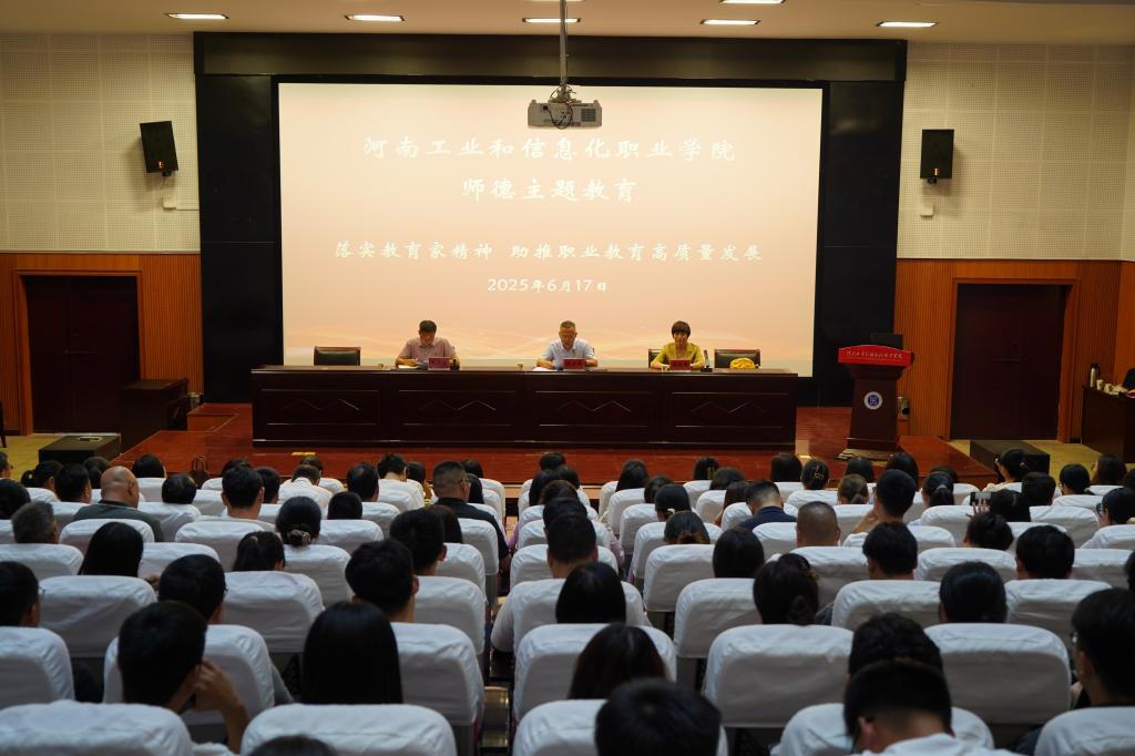 2025年6月17日下午,为深入推进我校师德师风建设,引导全体教师坚定育人初心,筑牢廉洁底线,我校特邀焦作师范高等专科学校党委委员、副校长高闰青教授作题为《落实教育家精神 助推职业教育高质量发展》的主题讲座,校党委副书记张庆伟主持。