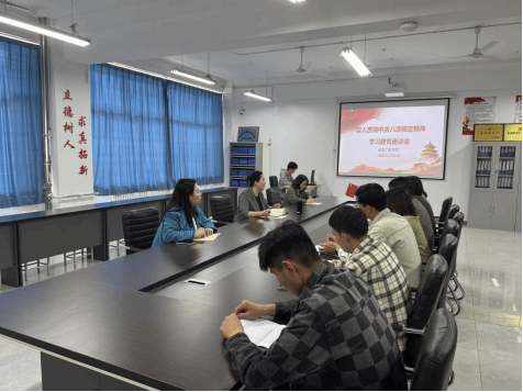 在认真聆听了师生党员代表的工作汇报后,王莹副校长和与会人员进行了深入的座谈交流。深刻阐释了中央八项规定精神的核心要义和实际要求,梳理了作风建设的历史发展与时代价值,为在场师生党员上了一堂内容丰富的党课。最后,她强调“三个务必”,务必凝聚共识、务必突出重点、务必周密组织,党员师生要从自身做起,发挥头雁效应,以评促建、以改促干,层层压实责任,将党建与业务相融合,推动学校工作高质量发展。