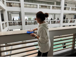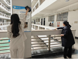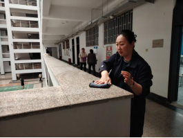 学生骨干以学院党员教师为标杆,在责任片区实施“1+N”引领模式,每名党员教师带领5名学生组成攻坚小组。手把手指导学生用除胶剂清理涂鸦、污渍,清理课桌内残留的纸屑,擦洗黑板和教学设备。教师党员分片督导时,主动加入学生劳动队伍,接过学生手中的抹布,一边擦拭窗台一边分享校园文化理念:“洁净的不仅是环境,更是我们的精神风貌。”