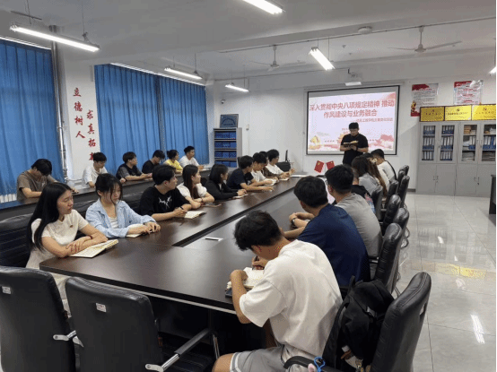 为深入贯彻落实全面从严治党要求,进一步强化学生党员纪律意识,推动作风建设与学业发展深度融合,2025年5月22日,信息工程学院于3317开展了“深入贯彻中央八项规定精神,推动作风建设与业务融合”主题党日活动。本次活动由信息工程学院学生第一党支部书记陈琳主持,全体学生党员参加。