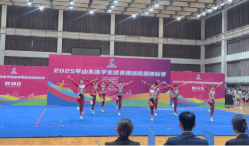 本届赛事由山东省学校体育协会主办,青岛市健美操协会承办,青岛职业技术学院、西海岸新区健美操啦啦操协会、城阳区健美操啦啦操协会及崂山区啦啦操协会联合协办,为全省学生健美操啦啦操爱好者搭建了高水平竞技交流平台。共吸引了全省各地市上千名运动员同台竞技。社会体育指导与管理教研室主任郑雁飞、教师张馨月、公共艺术教研室教师韩丹妮带领我校社会体育指导与管理两支队伍参赛,以专业素养展现了社体专业学子的过硬实力。
