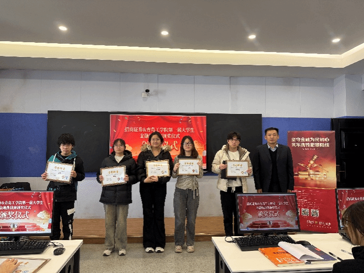 2025年12月19日上午,青岛工学院经济管理学院与招商证券胶州营业部联合举办的首届“金融挑战赛”颁奖典礼在智能风控实验室举行。本次大赛以“知行合一,融创未来”为主题,吸引了众多学生积极参与。经过为期三个月的模拟交易、案例分析与答辩展示,最终评选出19名获奖者,包括一等奖兼最佳表现奖1人、二等奖3人、三等奖5人及优秀奖10人。本次活动充分展现了校企协同育人的创新模式,推动了金融理论与实践教学的深度融合。