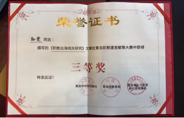 大赛分为“理论研究奖”和“案例创新奖”两个类别,分别聚焦职业教育政策研究和实践创新。孙雯老师提交的《职教出海相关研究》紧扣青岛职业教育发展实际,围绕产教融合、人才培养等关键问题提出建议,最终荣获三等奖。